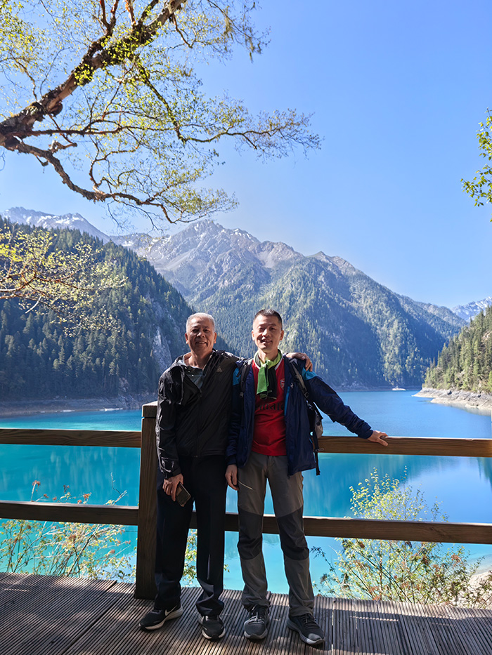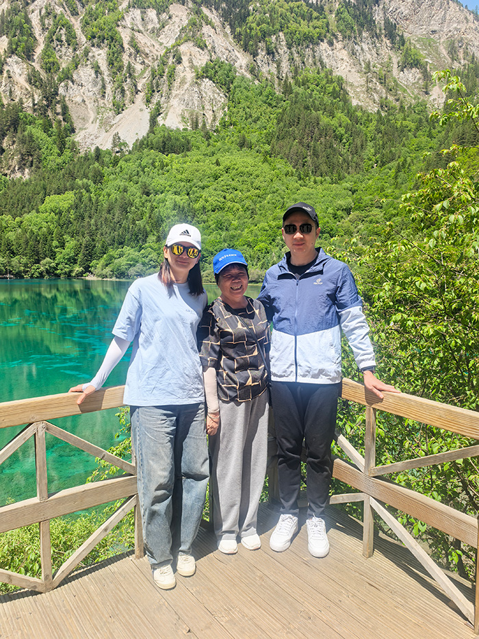 從成都乘動車前往黃龍,我們與父母攜手登臨海拔3578米的“人間瑤池”。鈣化池如翡翠鑲嵌雪山之間,棧道上,父母雖步履稍緩,卻始終與我們并肩而行。